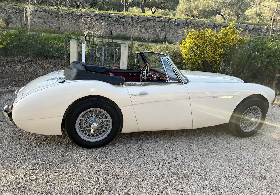 L'Austin Healey 3000 ( moteur 3 litres 6 cylindres) est avec la Jaguar type E un des plus emblématiques roadster Anglais. Dispose de 4 places Contribution type 465 Euros ( euros par km supplémentaire au delà de 155 km ) Détails 5 heures de mise à disposition sur place 4 places assises Lieu de garage : Salernes 83690Cabriolet - couleur extérieure Blanc - couleur intérieure Bordeaux - sellerie Cuir - transmission Manuelle RETOUR◄ Contact propriétaire