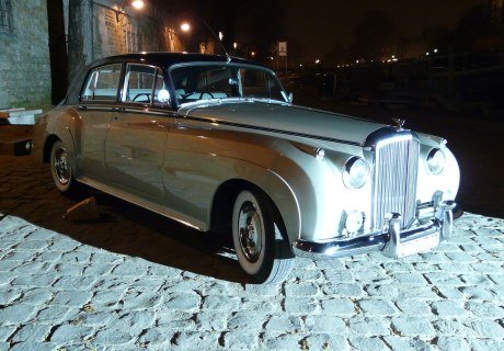 Soeur jumelle de la Rolls Royce Siver Cloud, cette magnifique BENTLEY se différencie uniquement par sa calandre plus arrondie , plus aérodynamique et plus conforme au passé sportif de la marque. Une voiture hors du commun pour un moment inoubliable dans un silence et un confort très British. Notez les pneus à flancs blancs. forfait 120 km.